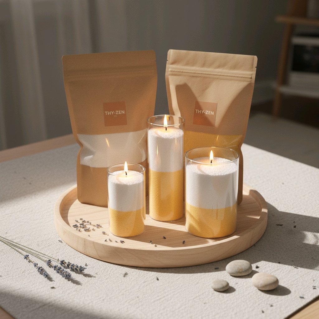 Du kan vælge poser med enten 500 eller 750 gram stearinlys pulver, hvilket giver mange timers lys, ro og kreativ frihed. En fleksibel og bæredygtig måde at skabe stemning på – igen og igen.